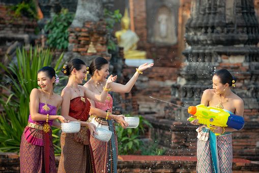 웃음이 가득한 이 축제는 물을 뿌리며 태국의 새해를 기념하고 이는 원죄와 불운을 씻어내는 것을 상징합니다.